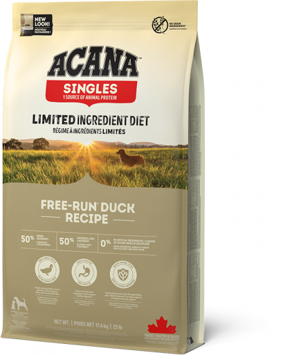 Based on this biological fact, and to produce a nutritional analysis that mirrors the diet Mother Nature would provide for your dog, ACANA Duck & Pear is rich in nourishing protein and fat, while excluding grains, gluten, and long lists of synthetic ingredients found in some dog foods.