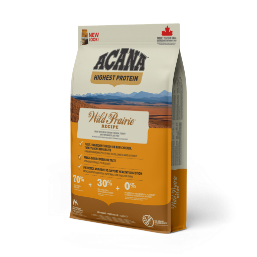 Acana Wild Prairie è un cibo secco di qualità Premium per cani adulti di tutte le razze e taglie, che si distingue per la sua ricetta ispirata alle esigenze nutrizionali naturali dei cani. Le crocchette vi conquisteranno per la molteplicità degli ingredienti, ma anche per l' altissima qualità delle materie prime utilizzate. Così Fido potrà assorbire e assimilare in maniera ottimale il cibo che contribuirà ad accrescere la sua vitalità e il suo benessere.