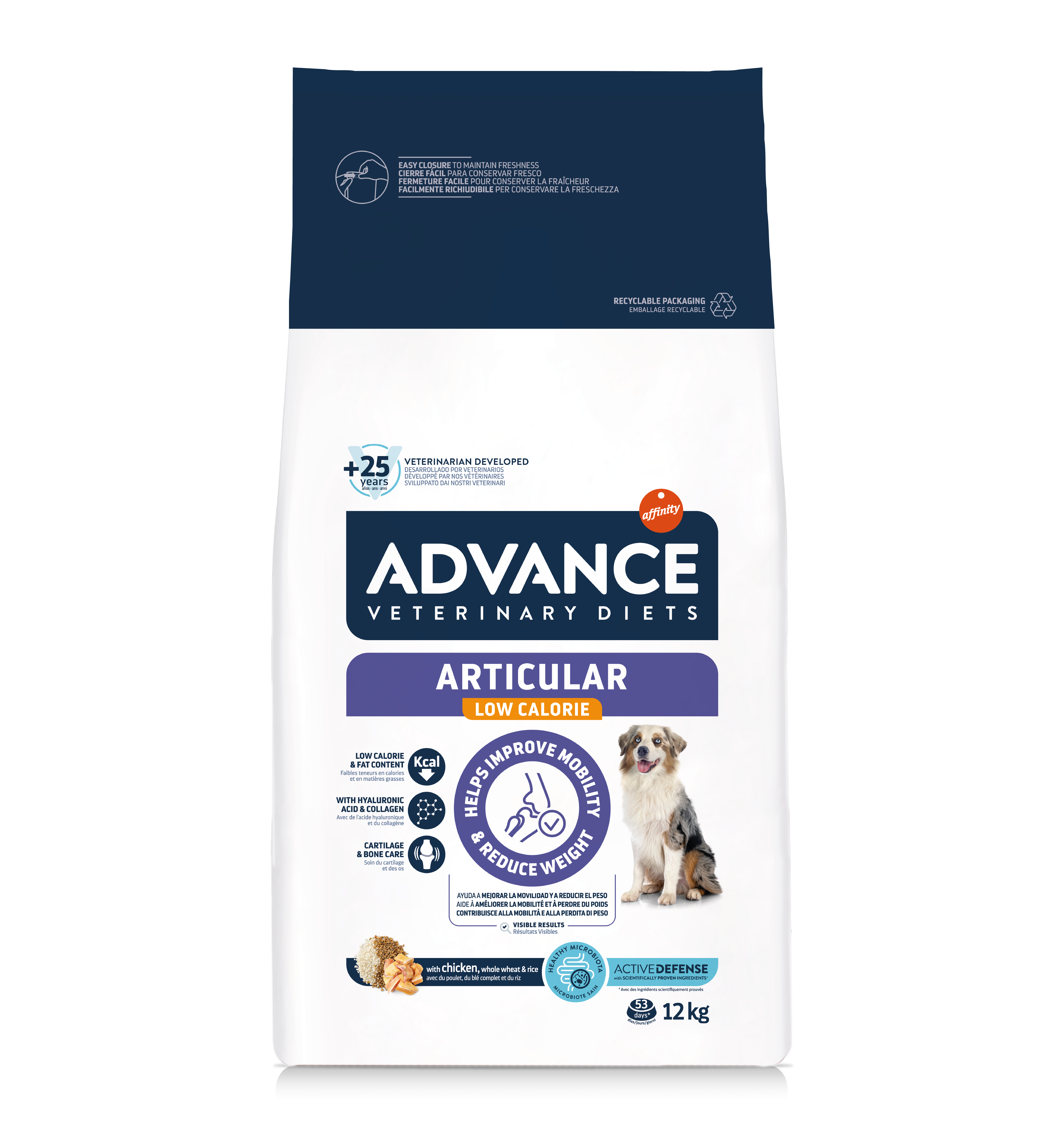Advance Veterinary Diets Articular reduced calorie aiuta a ridurre il peso e a conservare la salute e la mobilità articolare in cani sovrappeso, grazie alla sua formula a basso contenuto calorico.
