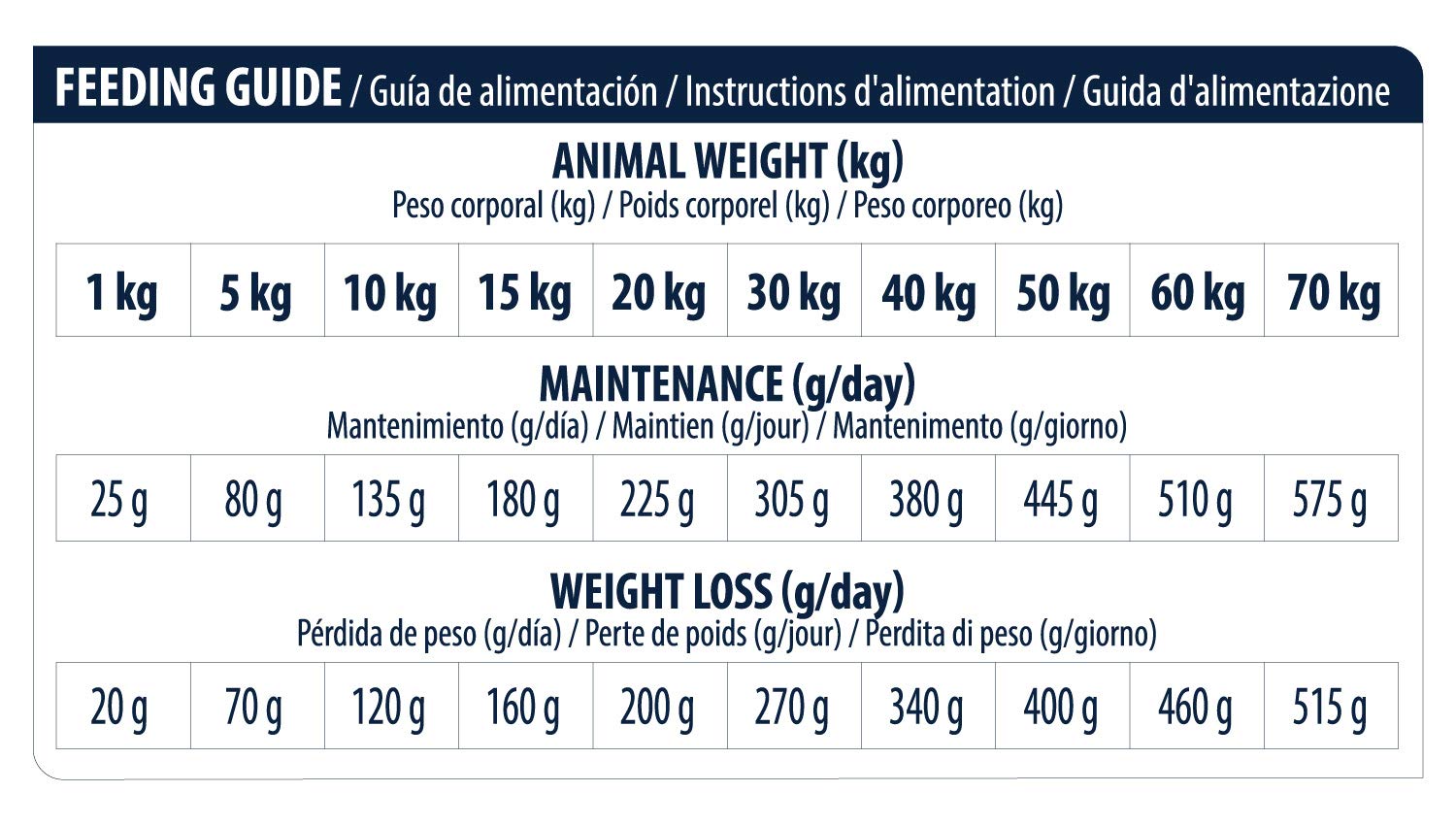 Questi dosaggi sono da considerarsi indicativi: adattare perciò le dosi in funzione dell'attività fisica svolta, dell'età, della razza, delle condizioni fisiche individuali e di quelle climatiche.