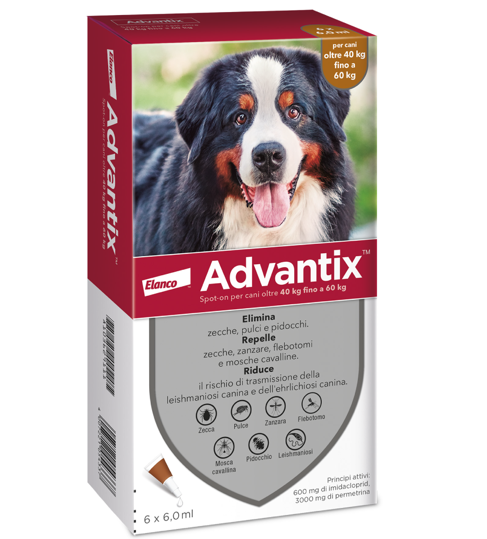 Advantix non solo elimina pulci e zecche, bensì ha anche un effetto repellente nei confronti di zecche, zanzare e flebotomi.
