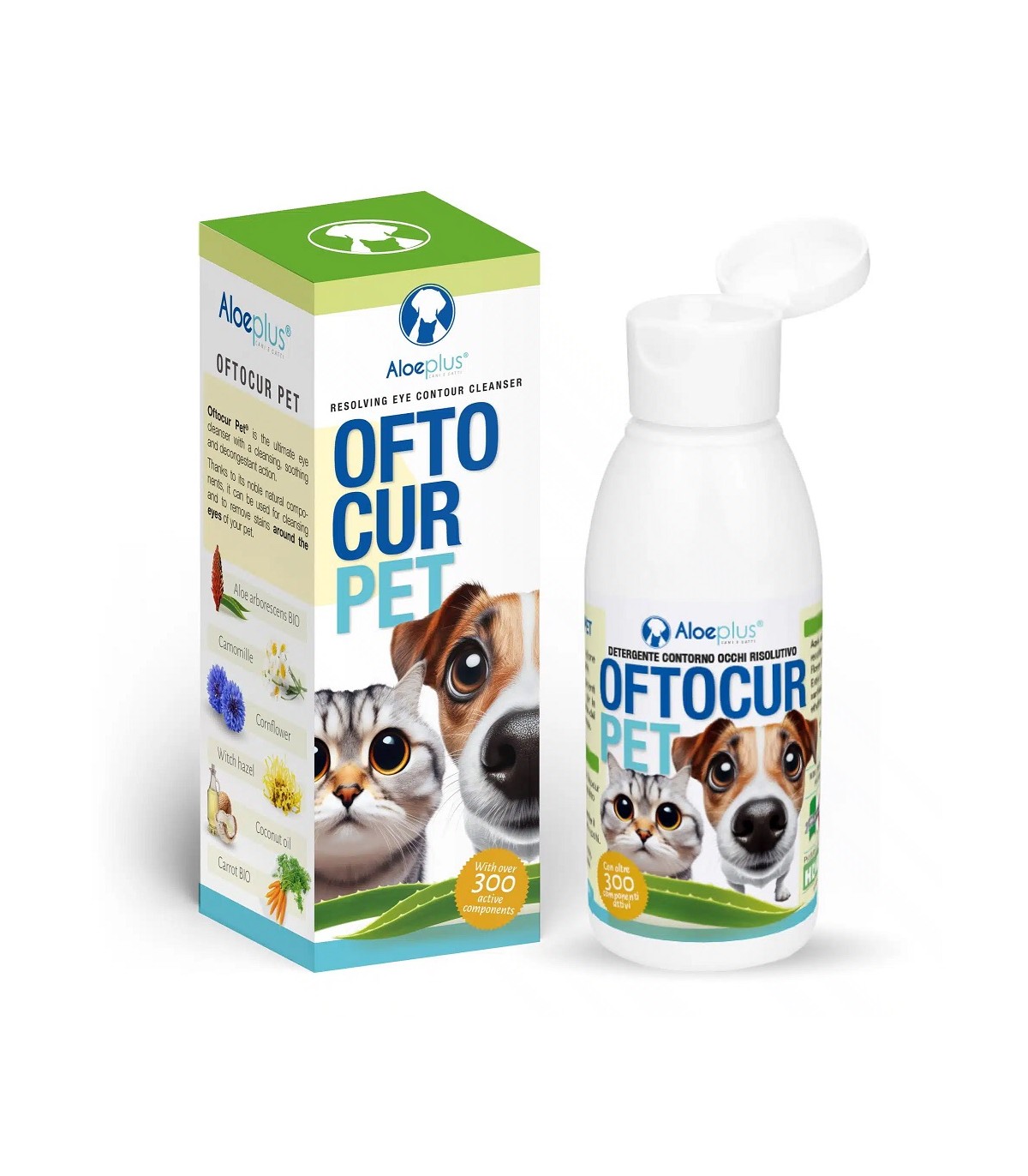 Aloeplus® Oftocur Pet® detergente oculare risolutivo formulato con ingredienti nobili di naturale vegetale e biologica è ideale per pulire delicatamente il contorno occhi del tuo amico a 4 zampe.