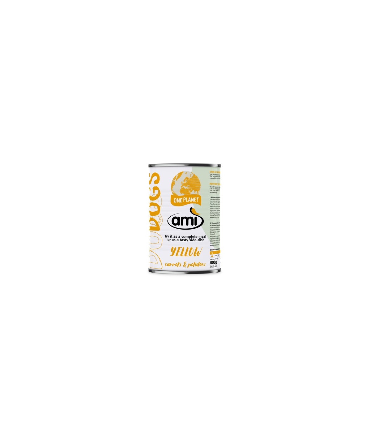 Cibo umido vegetale per cani, Ami Yellowè un prodotto alternativo o integrativo alle crocchette per la dieta quotidiana del tuo cane.