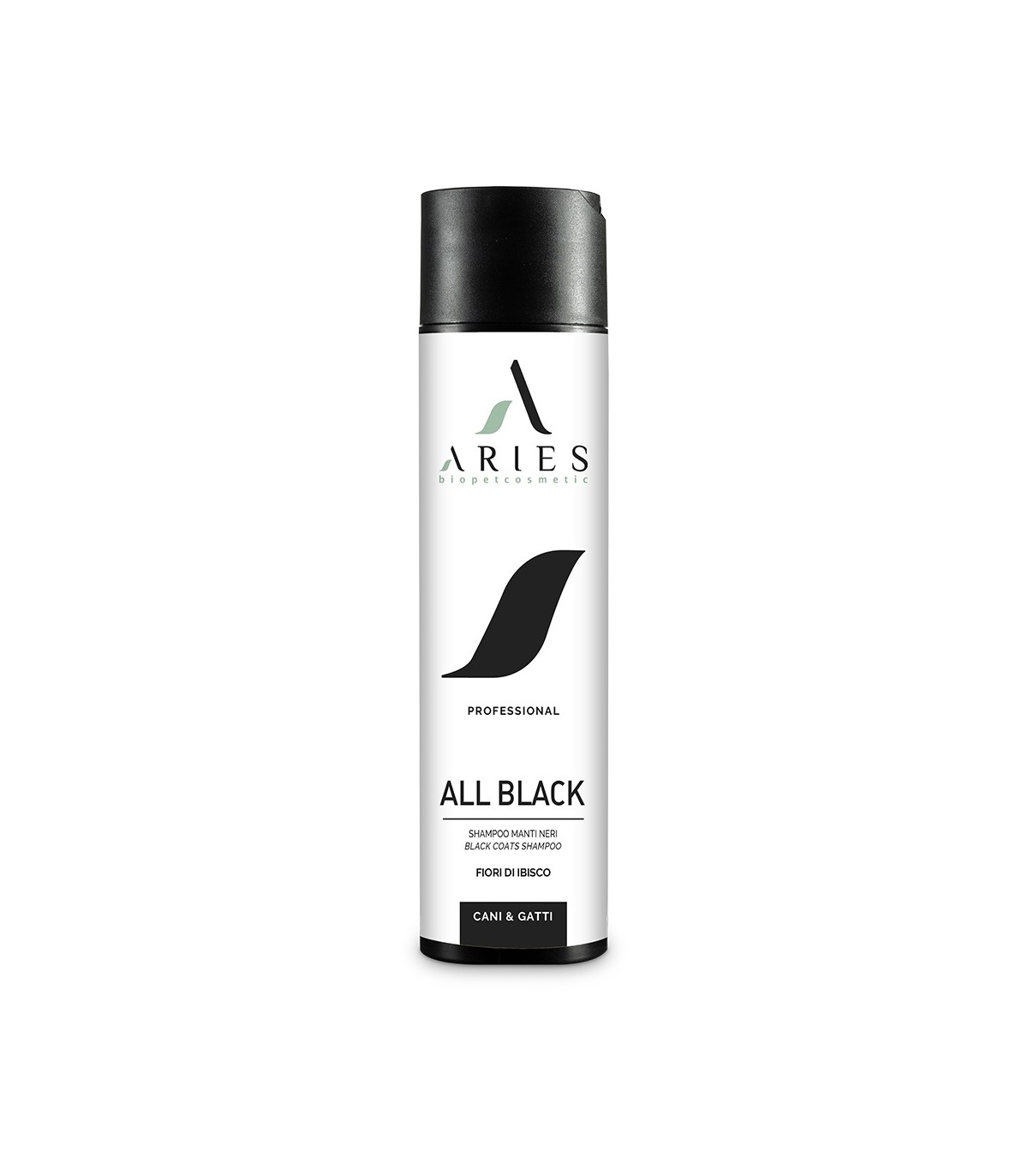 All Black shampoo professionale ravvivante per manti scuri, formulato con ingredienti da agricoltura biologica ideale per cani e gatti con pelo nero o scuro. Deterge delicatamente, rimuove lo sporco, ravviva, migliora e valorizza il colore e la naturale brillantezza anche per i manti scoloriti.