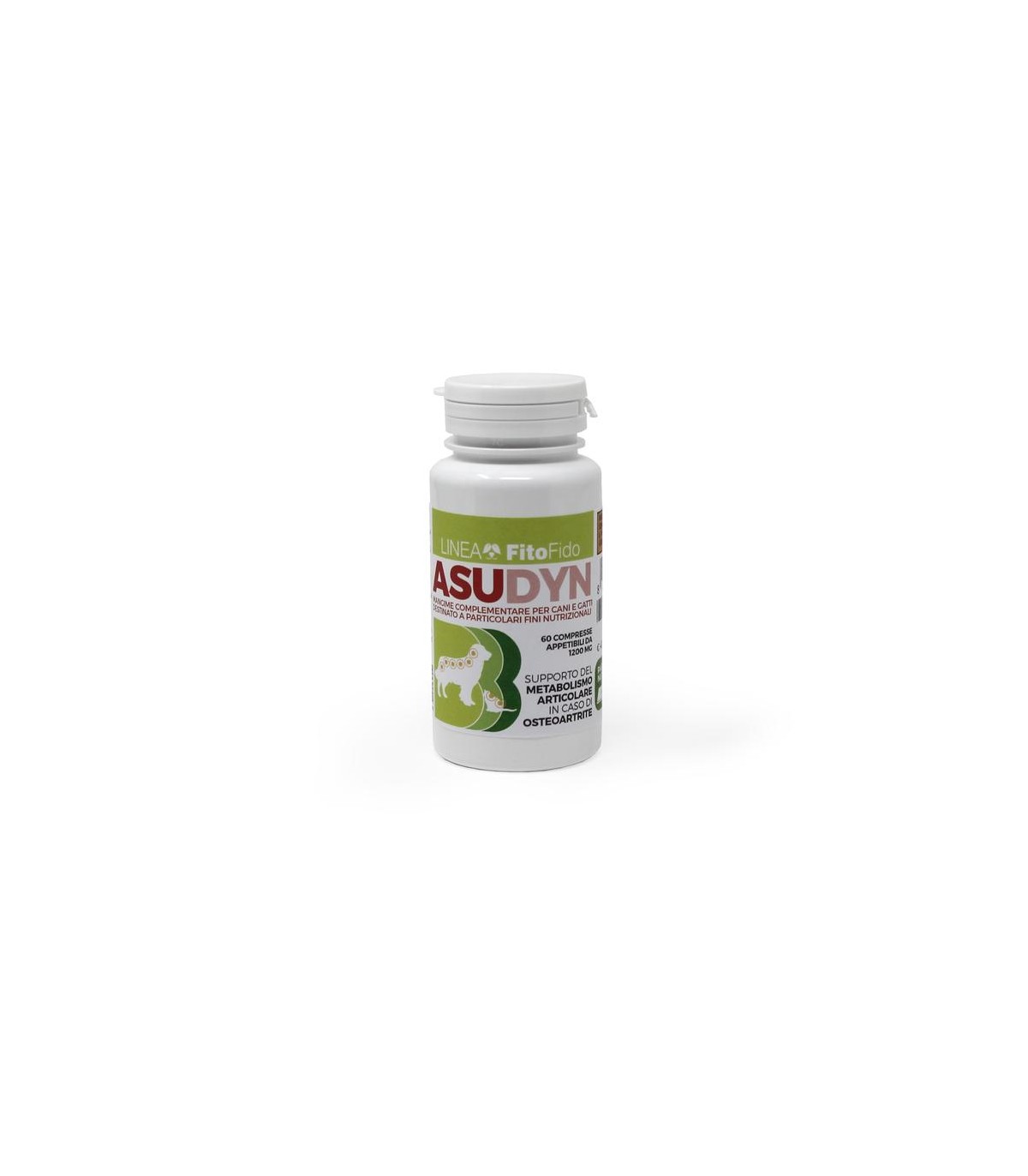 ASUDYN mangime complementare destinato a particolari fini nutrizionali in compresse divisibili da 1200 mg,è particolarmente indicato come supporto del metabolismo articolare in caso di osteoartrite nel cane e nel gatto. La formulazione di ASUDYN risulta di facile somministrazione ed elevata appetibilità. ASUDYNè particolarmente indicato anche in soggetti anziani o in soggetti sportivi, sottoposti ad elevato sforzo fisico.