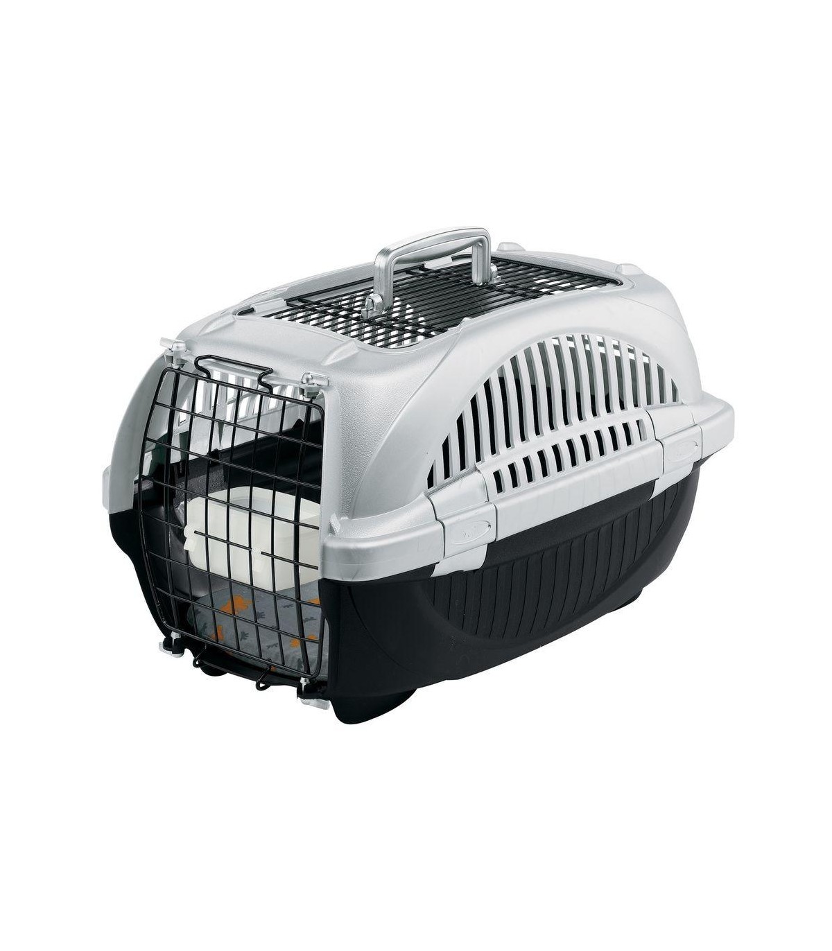 La porta realizzata in acciaio plasticatoè chiudibile dall'esterno grazie ad una speciale serratura che evita spiacevoli aperture accidentali durante il tragitto. Il tetto superiore apribile consente maggiore aerazione e permette al tempo stesso di controllare il vostro animale. Il trasportino per cani e gatti Atlas Deluxe Openè dotato inoltre di impugnatura ergonomica con maniglia fissa per trasporto agevole. Le salde clip laterali garantiscono un sistema di aggancio e sgancio rapido ed efficace: maggiore sicurezza abbinata a facilità di manutenzione! La doppia apertura presente sia sul lato frontale che superiore consente di accedere direttamente all'interno del trasportino per fornire cibo e acqua al vostro animale (mangiatoia in plastica e cuscino in cotone lavabile inclusi). Il cuscino, disponibile in colori e fantasie assortite, verrà spedito secondo disponibilità a magazzino.