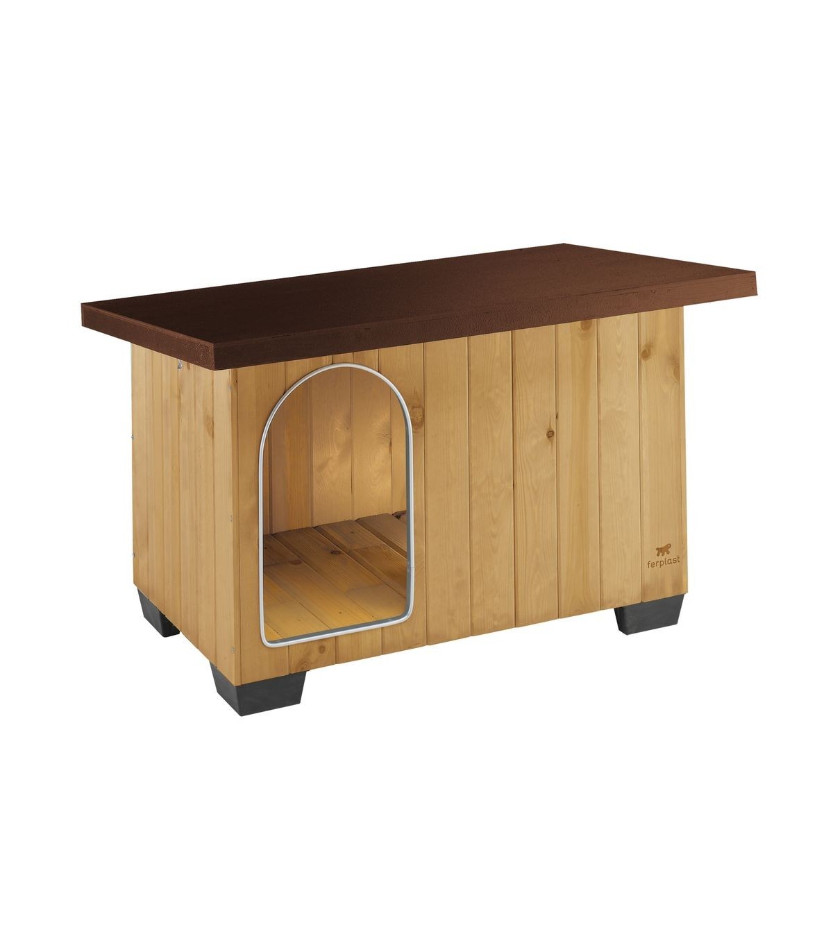 Baita presenta una particolare costruzione con tetto leggermente in pendenza per consentire il corretto scolo dell'acqua piovana. Come tutte le cucce in legno per cani Ferplast,è ideale per l'esterno, anch'essa trattata sia internamente che esternamente con processi di verniciatura particolari per garantire la massima durata e resistenza a qualsiasi condizione climatica. Il legnoè infatti protetto grazie ad una vernice impregnante ecologica atossica e antimuffa, resistente ai raggi U.V. e repellente all'acqua, applicata mediante tecnologia flow-coating.