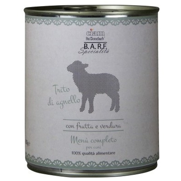 Il Menu Completo BARF Trito di Agnello con Frutta e Verdure per cani è uno stufato di carne (77% di agnello) delicatamente bollito, con frutta e verdura selezionati e con oli naturali che permette di nutrire il vostro cane nella maniera più naturale possibile e soprattutto nel pieno rispetto delle sue esigenze.