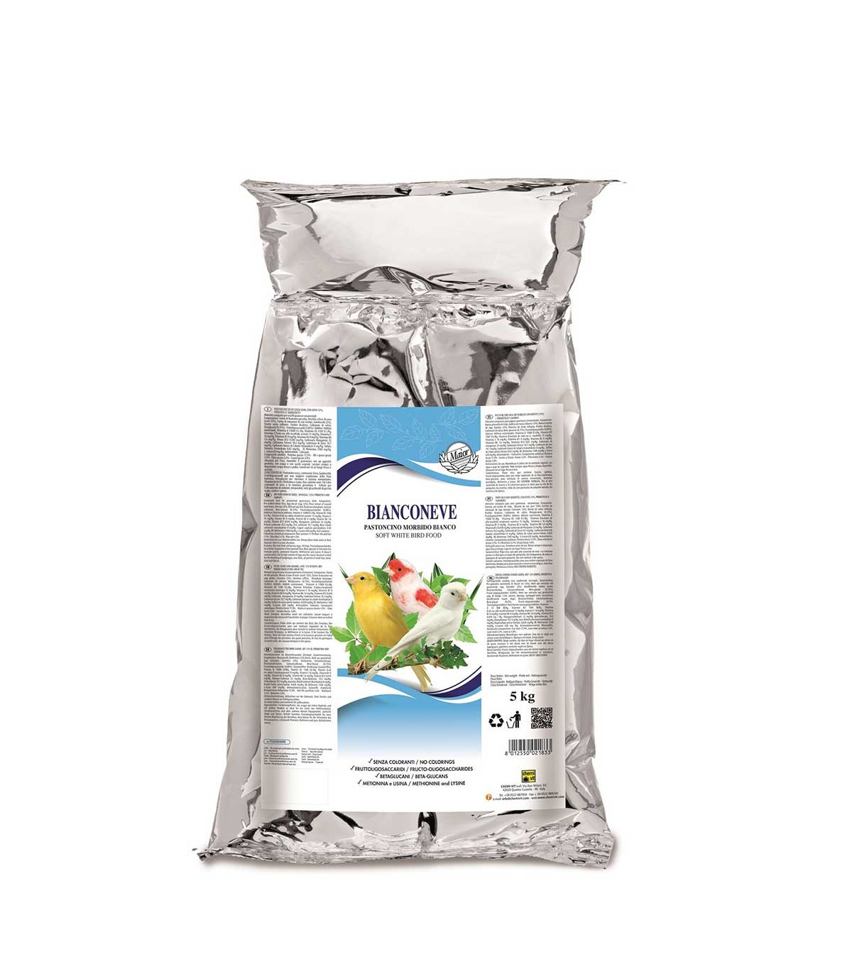 Istruzioni per l'uso. Miscelare 800 g di Bianconeve con 200 g di Nutrient Special, nell'allevamento; usare tal quale nella muta; somministrare 3 giorni alla settimana nel periodo di riposo. Lasciare sempre a disposizione acqua fresca e pulita. Conservare in un luogo fresco e asciutto.