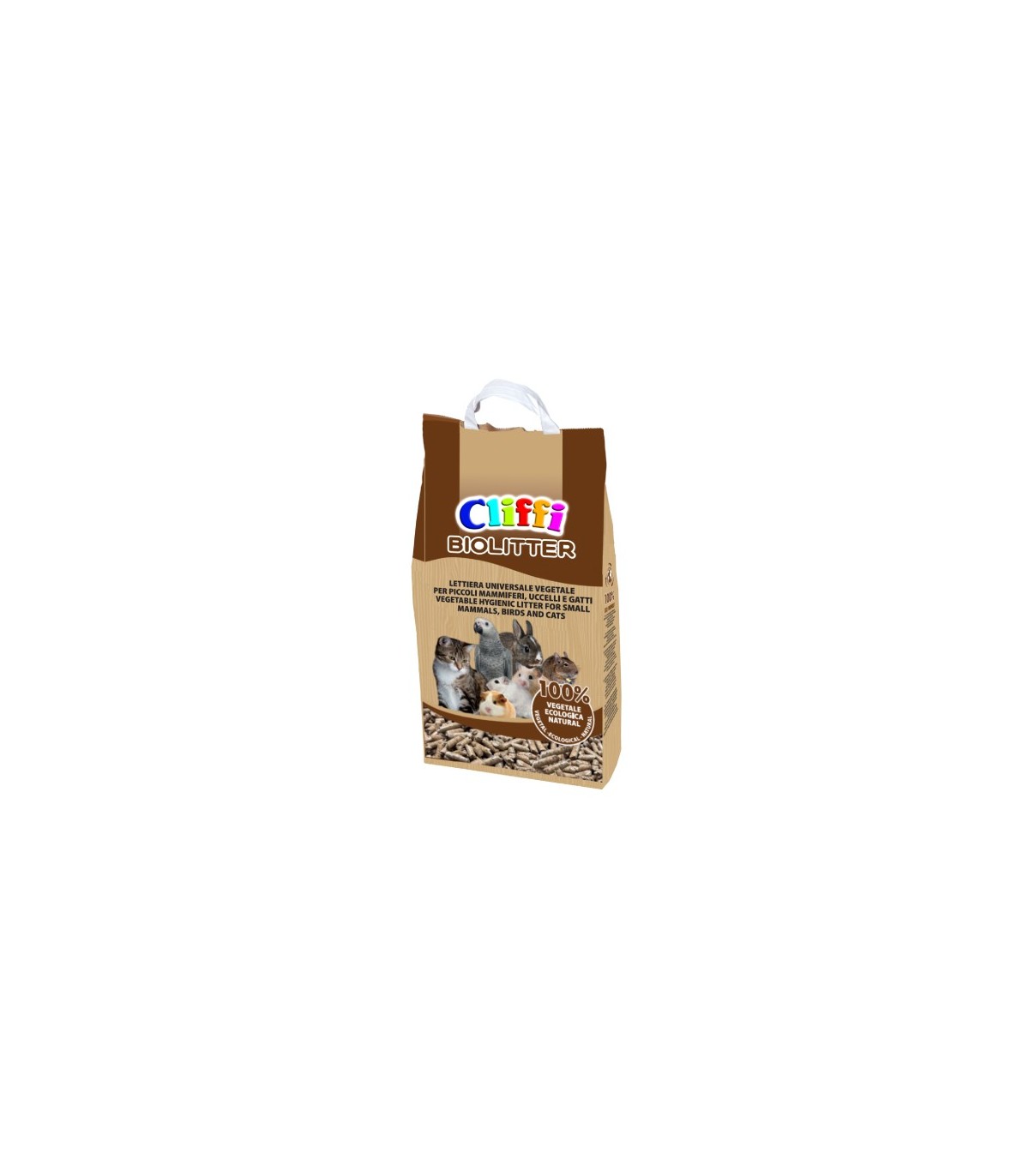 Cliffi biolitter 8 ltè una lettiera universale vegetale per roditori, uccelli e gatti.