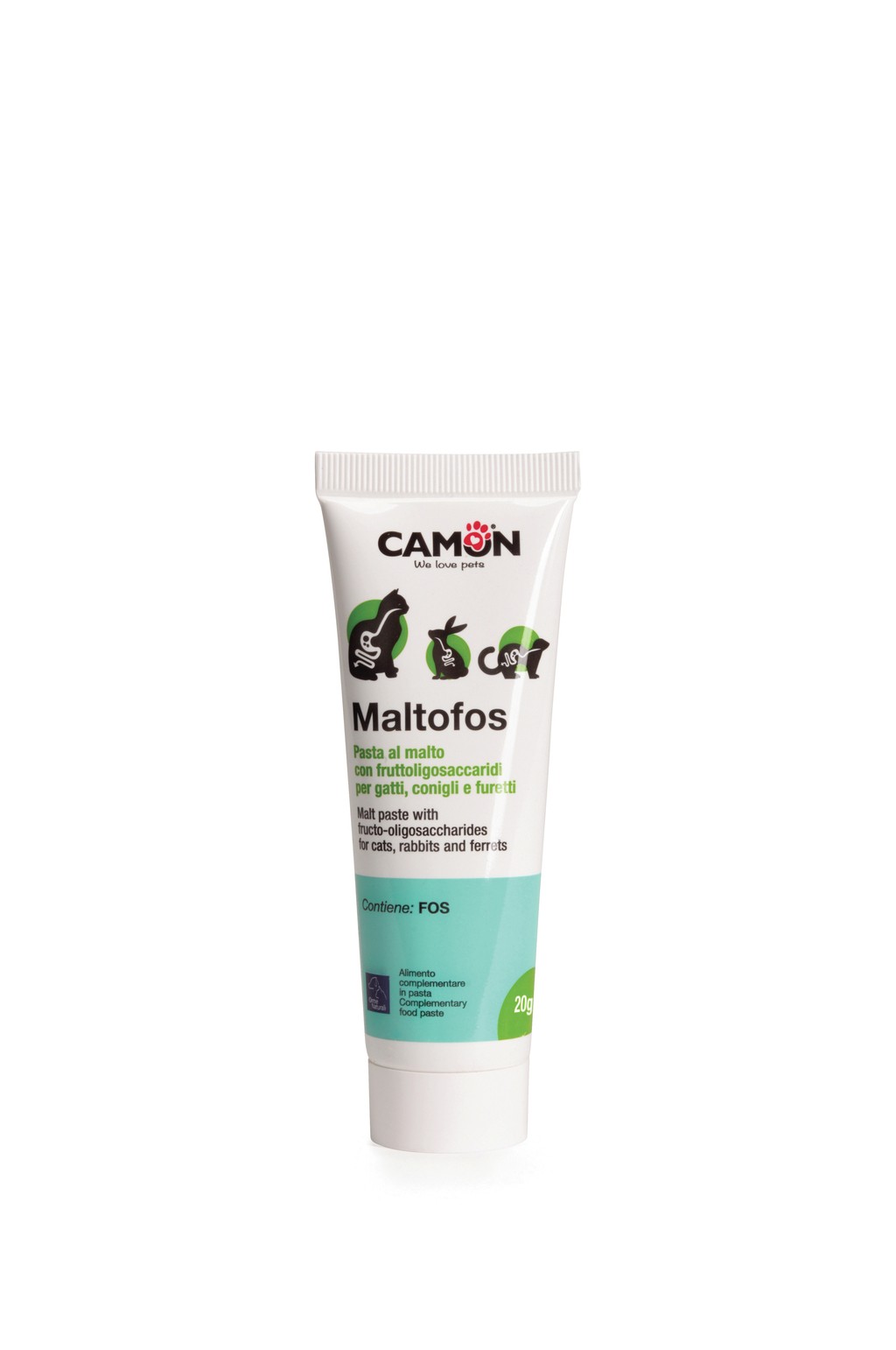 Maltofos è un appetitoso alimento complementare per gatti, conigli e furetti che, aggiunto al cibo o somministrato direttamente, aiuta a mantenere il normale equilibrio della flora intestinale.