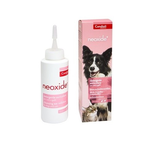 Candioli neoxide 100 ml, detergente auricolare otologico per cani e gatti ad azione cheratolitica, ceruminolitica, emolliente, idratante ed igienizzante.