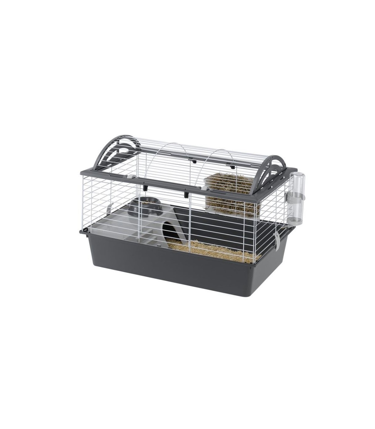Casita hanno un tetto arrotondato apribile; nel modello più grande per questioni di praticitàè diviso in due sezioni. Tutti i modelli sono dotati di accessori: mangiatoia, beverino, ciotola e casetta con parete a gradini per lasciare che il vostro amico ci salga sopra agevolmente. Lo sportellino scorrevole si può aprire così da permettere al piccolo animale di uscire di tanto in tanto e gironzolare libero per la casa.