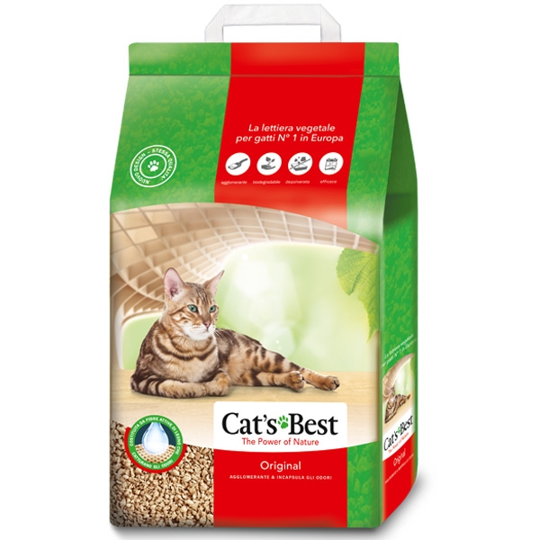 Cat’s Best costituita da fibre di legno attive tecnologicamente raffinate assorbe istantaneamente ed incapsula profondamente al suo interno umidità e odori. Gli odori vengono così eliminati sul nascere.