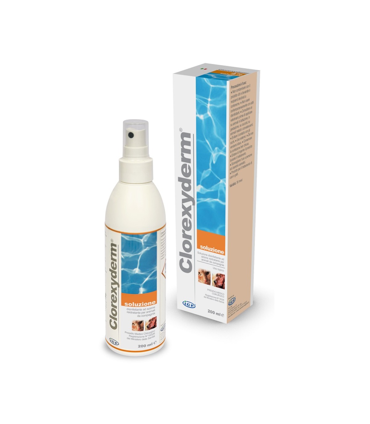 Clorexyderm è uno shampoo disinfettante ad ampio spettro a base di clorexidina, attivo nei confronti dei batteri Gram+ e Gram-.