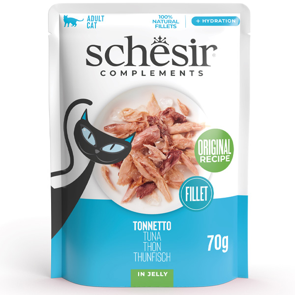 I prodotti complementari Schesir sono l'ideale da abbinare al secco per un mix feeding che fa leva sulla naturalit degli ingredienti: accompagna la freschezza di filetti di tonno cotti a vapore e accuratamente selezionati alle crocchette, per completare con gusto l'alimentazione del tuo gatto.