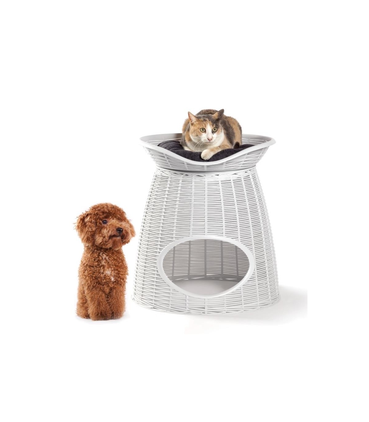 Cuccia per gatti e cani di piccola taglia dal design simil paglia che in un attimo può trasformarsi in comoda seduta. Ideale sia per i gatti che amano dormire in alto che per quelli che preferiscono nascondersi.
