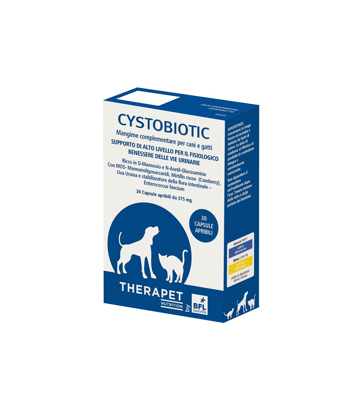 Mangime complementare in capsule apribili per cani e gatti formulato ad alto contenuto di D-mannosio e N-acetil-glucosamina, con MOS-mannanoligosaccaridi, mirtillo rosso (vranberry), uva ursina ed Enterococcus faeciumadditivo stabilizzatore della flora intestinale, come supporto di alto livello per il fisiologico benessere delle vie urinarie. Il prodotto risulta di facile somministrazione grazie allottimo profilo di appetibilit.