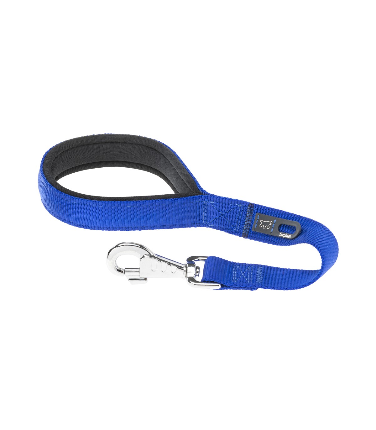 Guinzaglio corto in nylon con impugnatura imbottita e porta sacchetti igienici integrato