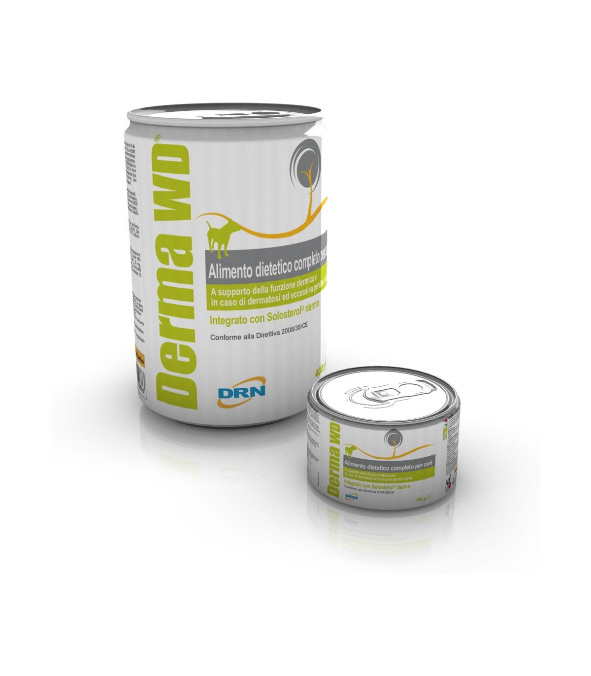 Derma® WD è un alimento dietetico completo per cani indicato a supporto della funzione dermica e in caso di dermatosi ed eccessiva perdita di pelo. Contiene elevate quantità di salmone, patata, piselli e farina di riso fermentata. La sua formula specifica, totalmente priva di glutine,è integrata con Solosterol® Derma i cui componenti hanno dimostrato, nel corso di studi che prevedevano la sua somministrazione per un periodo di quattro settimane, la loro efficacia nella riduzione del prurito, dell'eritema, delle escoriazioni e della perdita di pelo.