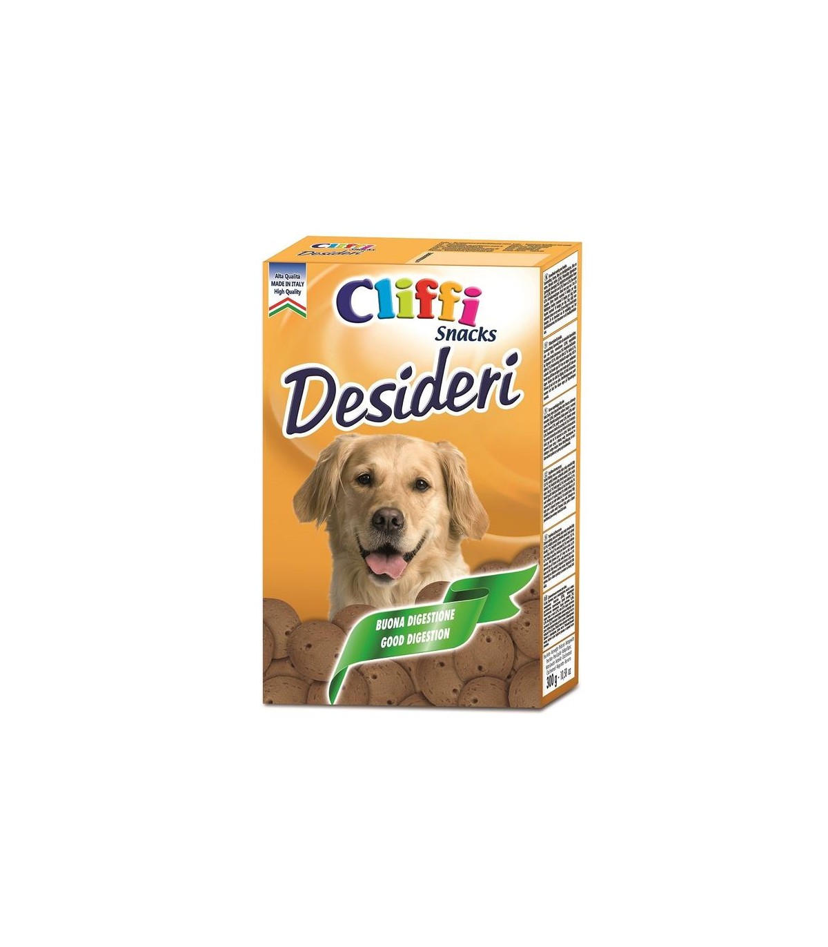 Cliffi desideri snacks 350 grè un alimento complementare per cani. BUONA DIGESTIONE. BISCOTTI A BASE DI CARNE.