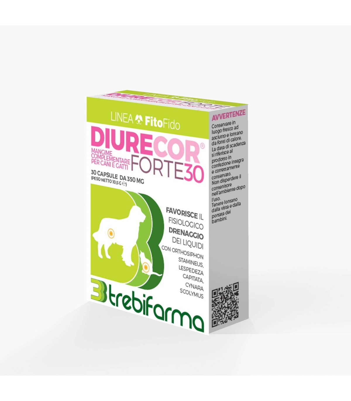 Trebifarma diurecor forte 30 compresse è un mangime complementare per cani e gatti con lespedeza capitata, cynara scolymus, orthosiphon stamineus favorisce il fisiologico drenaggio dei liquidi 30 compresse da 350 mg peso netto 10,5 g.