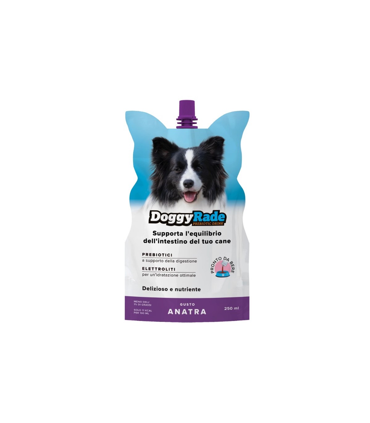 DoggyRade è una bevanda funzionale per cani che contiene prebiotici, elettroliti e aminoacidi benefici.