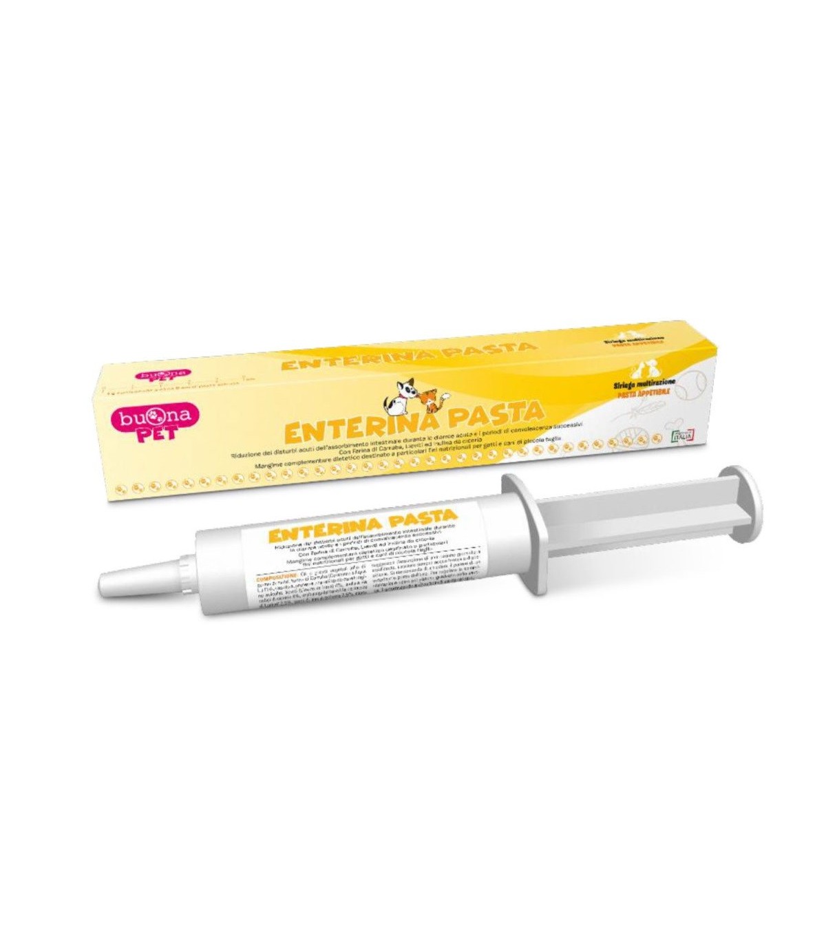 ENTERINA PASTA e\xcc\x80 un mangime complementare per cani e gatti destinato a particolari fini nutrizionali per la riduzione dei disturbi acuti dell'assorbimento intestinale, utile complemento durante le diarree acute e i periodi di convalescenza successivi.