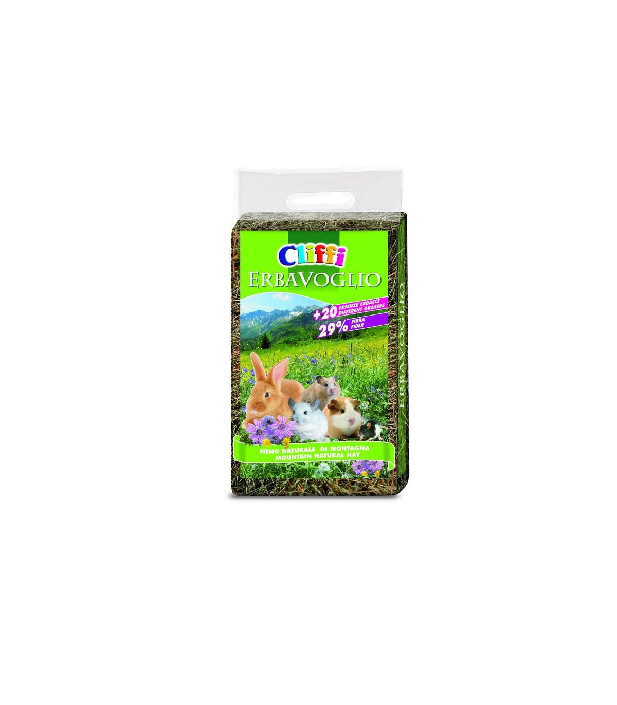 Caratteristiche: ERBAVOGLIOè un fieno di alta qualità, essiccato al sole e proveniente da incontaminati pascoli di montagna. È costituito da oltre 20 varietà erbacee, che apportano naturalmente Vitamine e Sali minerali. RICCO IN FIBRE (29%), è utile per una corretta usura dei denti, per una equilibrata alimentazione, e per mantenere efficiente la funzionalità dell'apparato gastroenterico dei piccoli mammiferi.