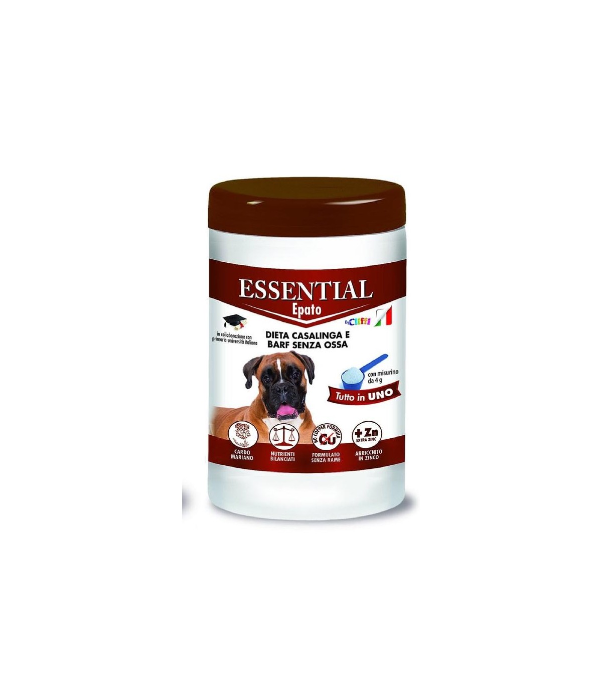 Caratteristiche: ESSENTIAL Cane Epatoè l'alimento complementare, essenziale per l'integrazione della dieta casalinga, a eliminazione, o BARF senza ossa del cane adulto, per favorirne la corretta funzionalità epatica. La vitamina E, la vitamina C, il selenio e l'estratto di cardo mariano, fonte di silimarina, svolgono un'azione epatoprotettrice grazie alla loro funzione antiossidante. Le aumentate concentrazioni di rame nel fegato risultano tossiche: in queste condizioniè quindi bene che la dieta sia povera di rame e ricca di zinco, che contribuisce a limitarne l'assorbimento intestinale. Per questa ragione ESSENTIAL Epatoè formulato senza aggiunta di Rame e con elevati livelli di Zinco. Contiene vitamine, macroelementi e oligoelementi minerali, normalmente carenti nelle diete casalinghe. I nutrienti antiossidanti supportano il sistema immunitario; il corretto rapporto calcio, fosforo e la vitamina D contribuiscono al benessere dell'apparato scheletrico, evitando i rischi di carenze o di possibili eccessi. Ad elevata tollerabilità, poichéè formulato senza fonti proteiche aggiunte.