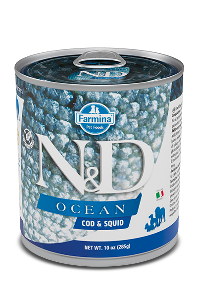 Farmina N/D Umido Ocean Dog Adult Spigola e Calamari 285 Grconfezione da 6 pz. € 2.46 cad. prezzo unitario