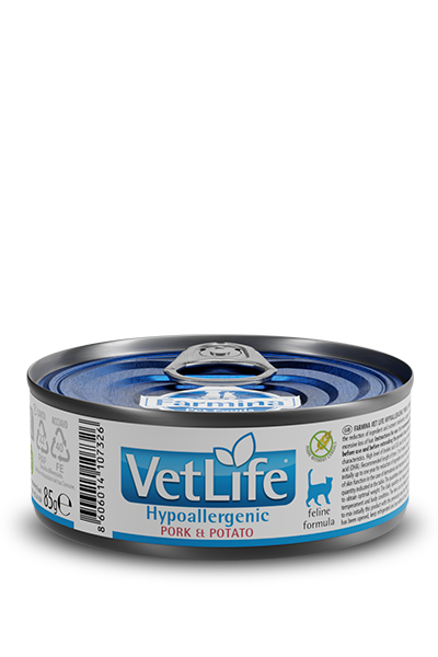 Farmina Vet Life gatto Hypoallergenic 85 gr è un alimento dietetico completo, per gatti, per la riduzione di intolleranze a ingredienti e sostanze nutritive; supporto alla funzione dermica in caso di dermatosi ed eccessiva perdita di peli.