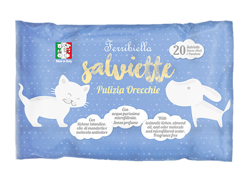 Salviette Detergenti Orecchie per Cani e Gatti Ferribiella sono salviette realizzate in morbido tessuto goffrato.