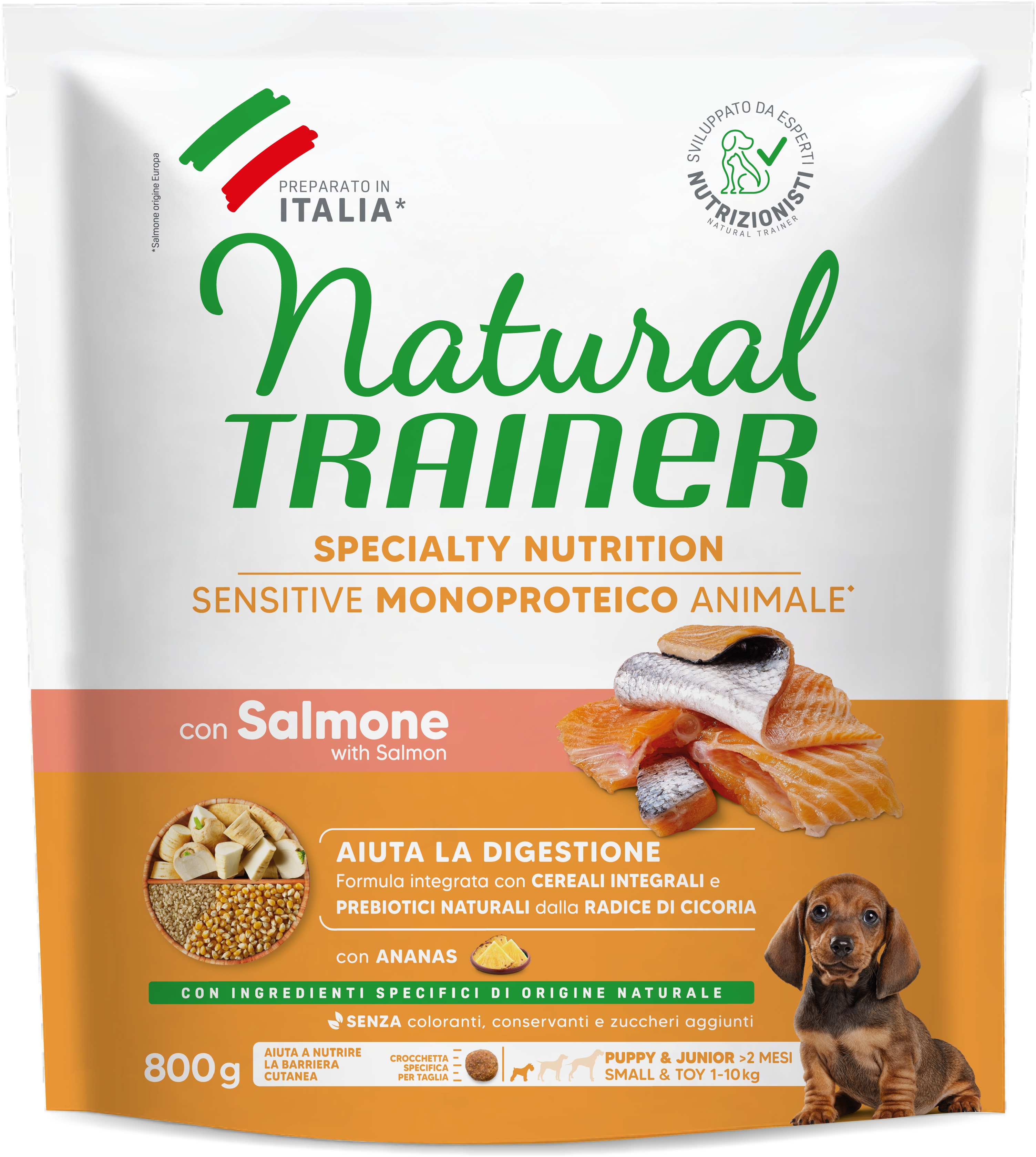 Fitness Natural Trainer Sensitive Puppy & Junior Salmone 800 gr Per Cane