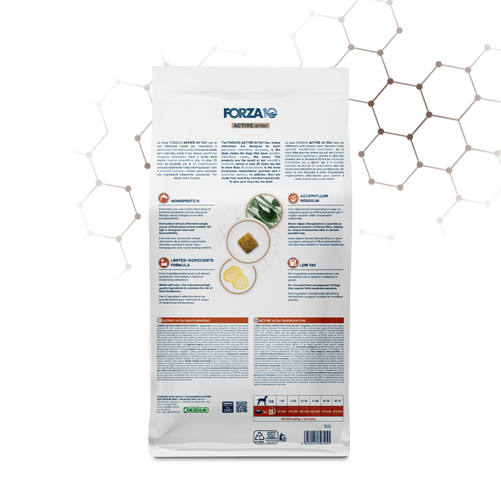 Componenti analitici: Umidità 9,0%, Proteina grezza 18,0%, Oli e grassi grezzi 8,5%, Fibra grezza 7,5%, Ceneri grezze 7,5%, Calcio 1,0%, Fosforo 1,0% , Omega3 0,5%, Omega6 2,0%, Sodio 0,3%, Potassio 1,0%.