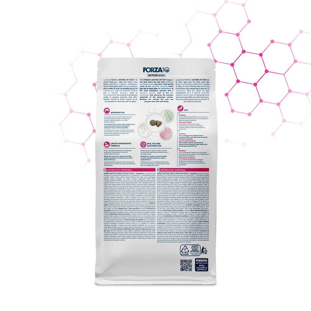 - formula dietetica ipoallergenica appositamente studiata per le intolleranze alimentari aventi come organo bersaglio l’apparato gastroenterico del gatto