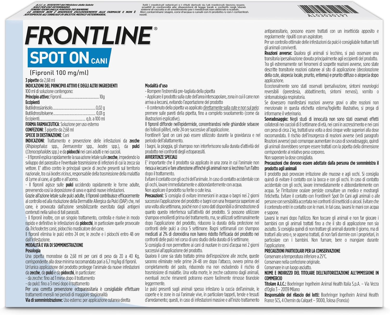 Frontline SPOT ON Taglia L 20-40 Kg - Antiparassitario per cane cani - 3 pipette