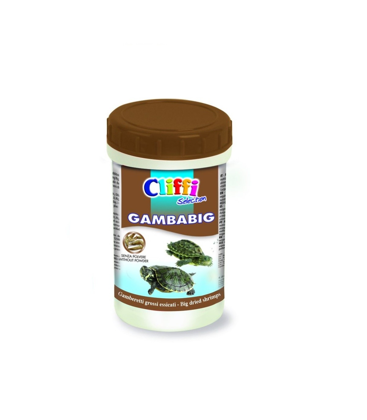 Cliffi gamba big 250 ml - 30 grè un mangime semplice per tartarughe d'acqua ornamentali di grossa taglia con gamberetti grossi essiccati.