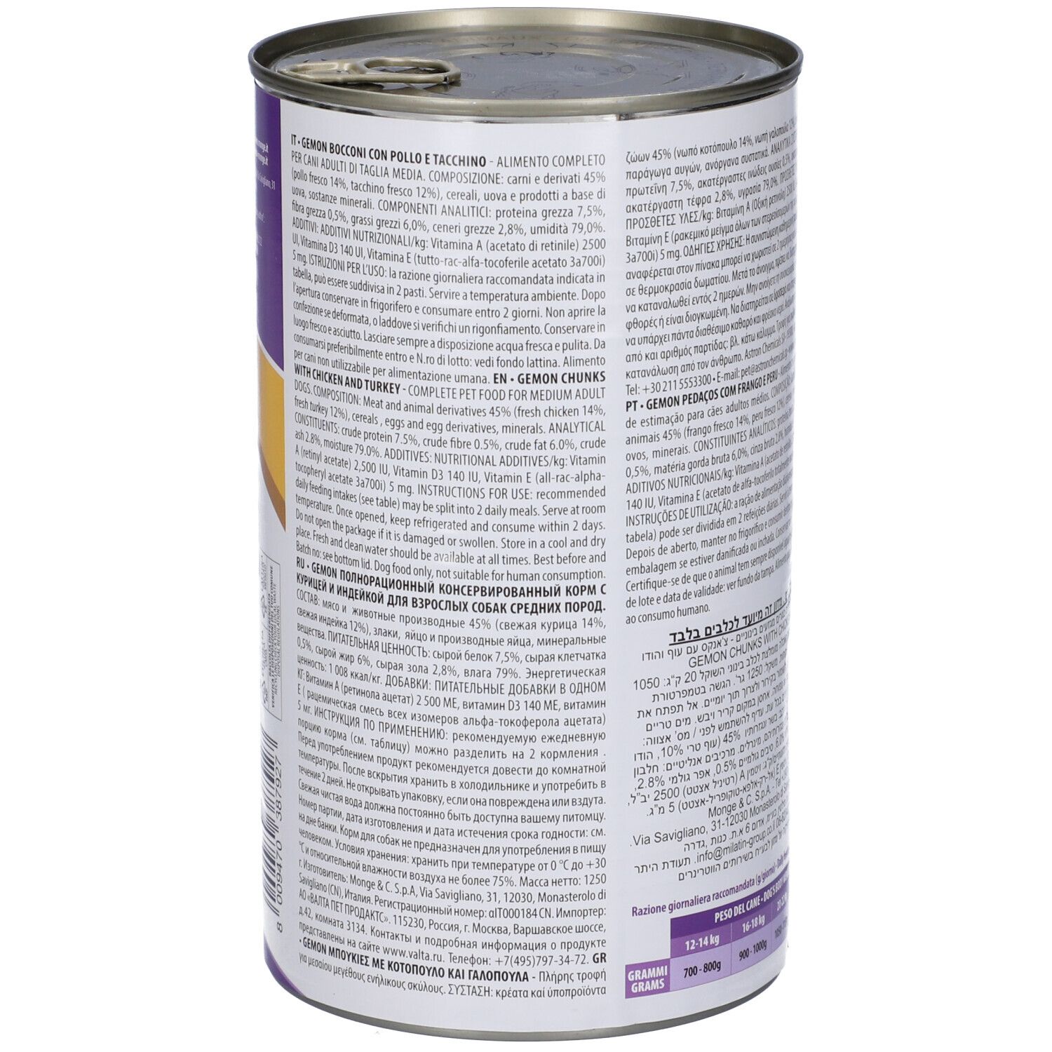 2. Gemon Dog Adult Bocconi Pollo e Tacchino 1,25 Kg Barattolo Umido Cane