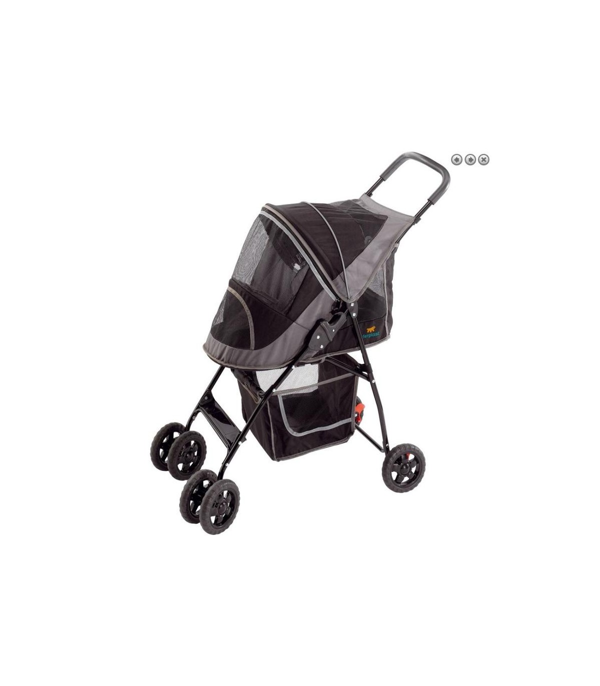 Globetrotterè un passeggino per cani di piccola taglia, fino a un peso di 9 kg, pensato per i cuccioli o per gli animali anziani e con difficoltà motorie. Affidabile e robusto,è realizzato con materiali resistenti, come plastica, metallo e tessuto, di gran qualità, in modo da avere un prodotto molto solido ma anche leggero. Estremamente confortevole per l'animale,è provvisto di cappottina che si alza e abbassa a piacimento, dotata di tettuccio con funzione anti-pioggia; inoltre, per permettere un'adeguata aerazione, le parti laterali, frontale e posteriore sono fatte in rete. Abbinando al comfort anche una grande praticità, Globetrotterè costruito in modo da essere facile da ripiegare e chiudere su se stesso per poter essere agevolmente trasportato nel bagagliaio della vostra auto e riposto con un ingombro minimo. Grazie poi al cestello portaoggetti in rete, con capienza fino a 3 chili, posto nella parte inferiore,è possibile portare con sé tutti gli accessori necessari alla passeggiata. Per una massima sicurezza, le ruote posteriori sono equipaggiate con freno bloccante, mentre quelle anteriori sono fornite di ammortizzatori che rendono il trasporto ancora più comodo. Infine, in condizioni di scarsa illuminazione, le strisce in tessuto riflettente garantiranno la visibilità. Se il vostro caneè troppo piccolo o vecchio per starvi dietro, ma volete comunque uscire per fargli fare una passeggiata, questo passegginoè la soluzione perfetta per portarlo con voi senza alcun problema!