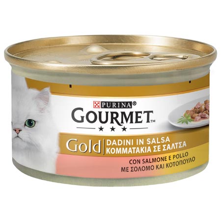 Gourmet gold dadini 85 gr Salmone e polloconfezione da 24 pz. € 0.69 cad. prezzo unitario