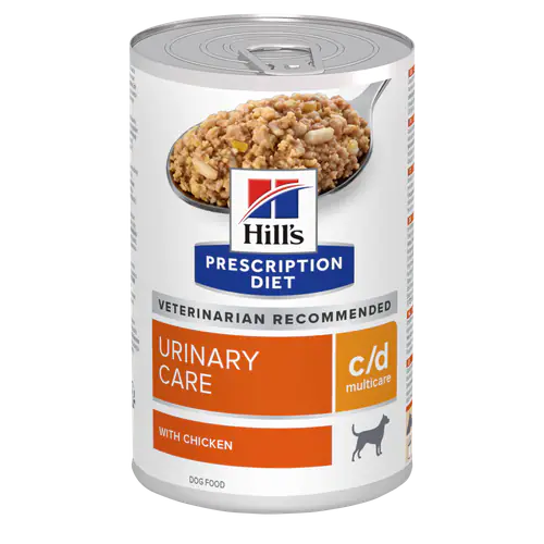Hill' s Prescription Diet c/d Multicare Urinary Carefavorisce la salute delle vie urinarie e riduce il rischio che i cristalli e i calcoli di struvite e di calcio - fosfato si riformino nell' urina. I calcoli vescicali sono molto dolorosi per i cani e si formano quando l' urina ? basica. Questo cibo umido ne contrasta la formazione in modo preventivo. Un elevato contenuto di antiossidanti contribuisce a neutralizzare i radicali liberi.