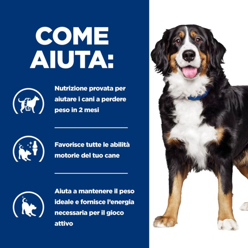 - alimento umido dietetico completo per cani adulti, ideale come supporto nutrizionale per la riduzione del chili di troppo e per supportare il metabolismo articolare in caso di osteoartrite