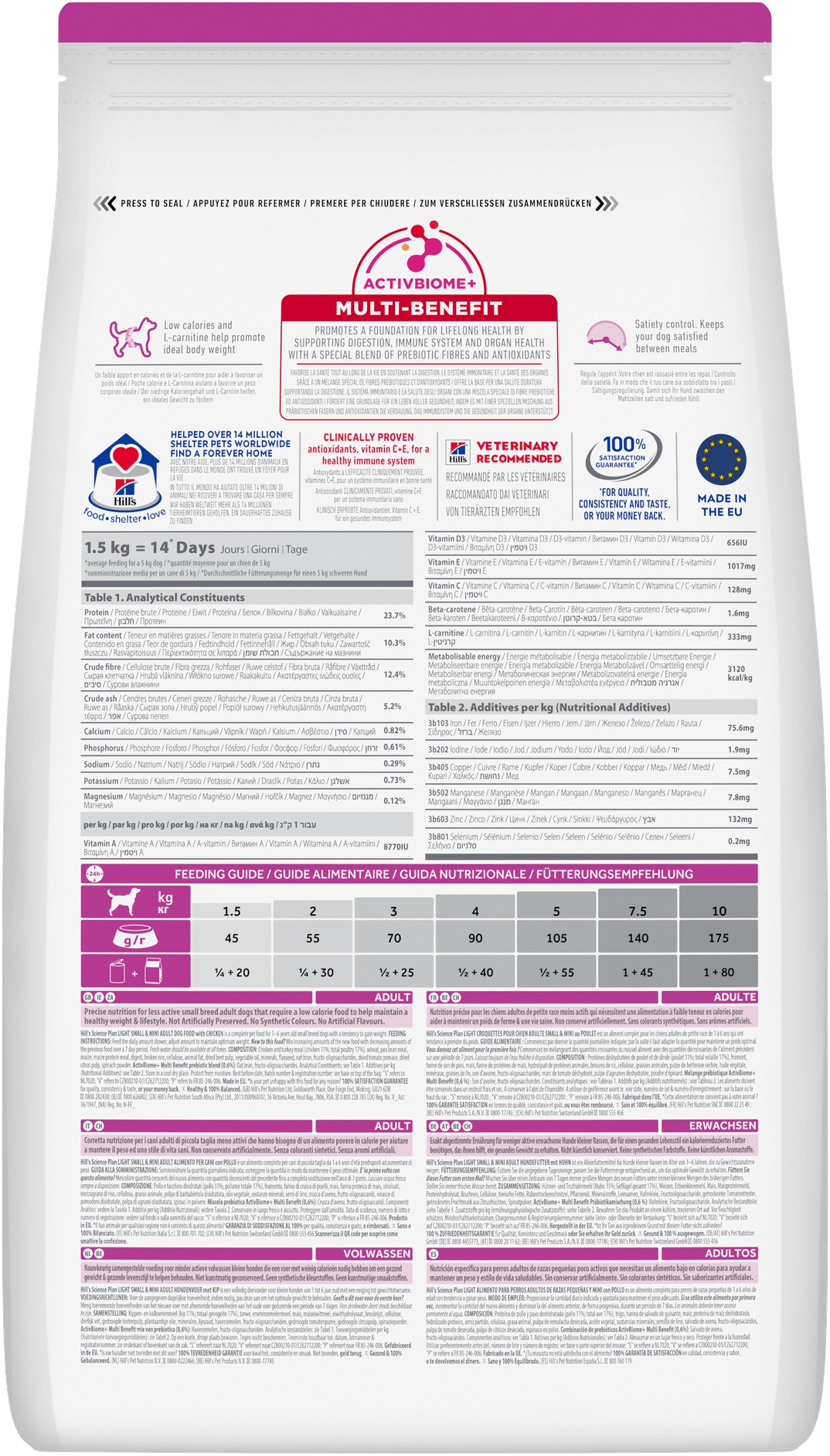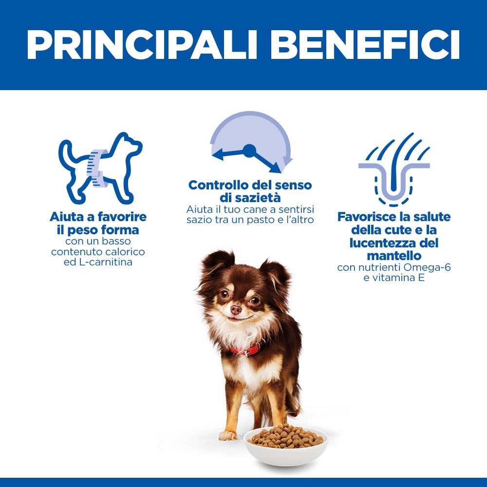 Hill' s Science Plan Adult 1-6 Light Small & Mini con Pollo è un alimento completo per cani di peso inferiore ai 10 kg.