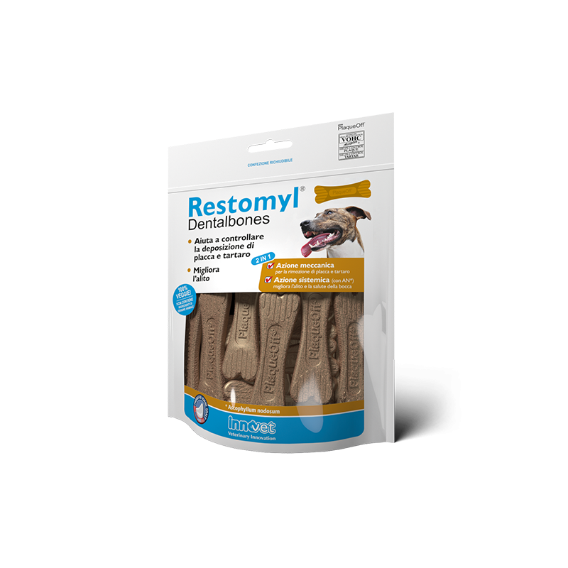 Restomyl® Dentalbones non è un farmaco veterinario, ma un alimento complementare per cani.
