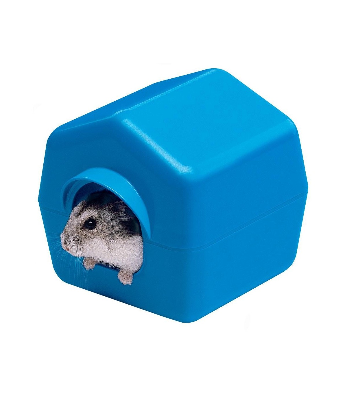 Ecco una colorata casetta per criceti e altri piccoli roditori, come topi e gerbilli, realizzata in plastica, che saprà fornire riparo ai vostri piccoli amici! Isba ha una simpatica forma compatta con tetto spiovente e una comoda porta d'entrata. Sarà un accessorio immancabile per la gabbia del vostro roditore. All'interno, il criceto potrà trovare un rifugio tranquillo in qualsiasi momento della giornata.