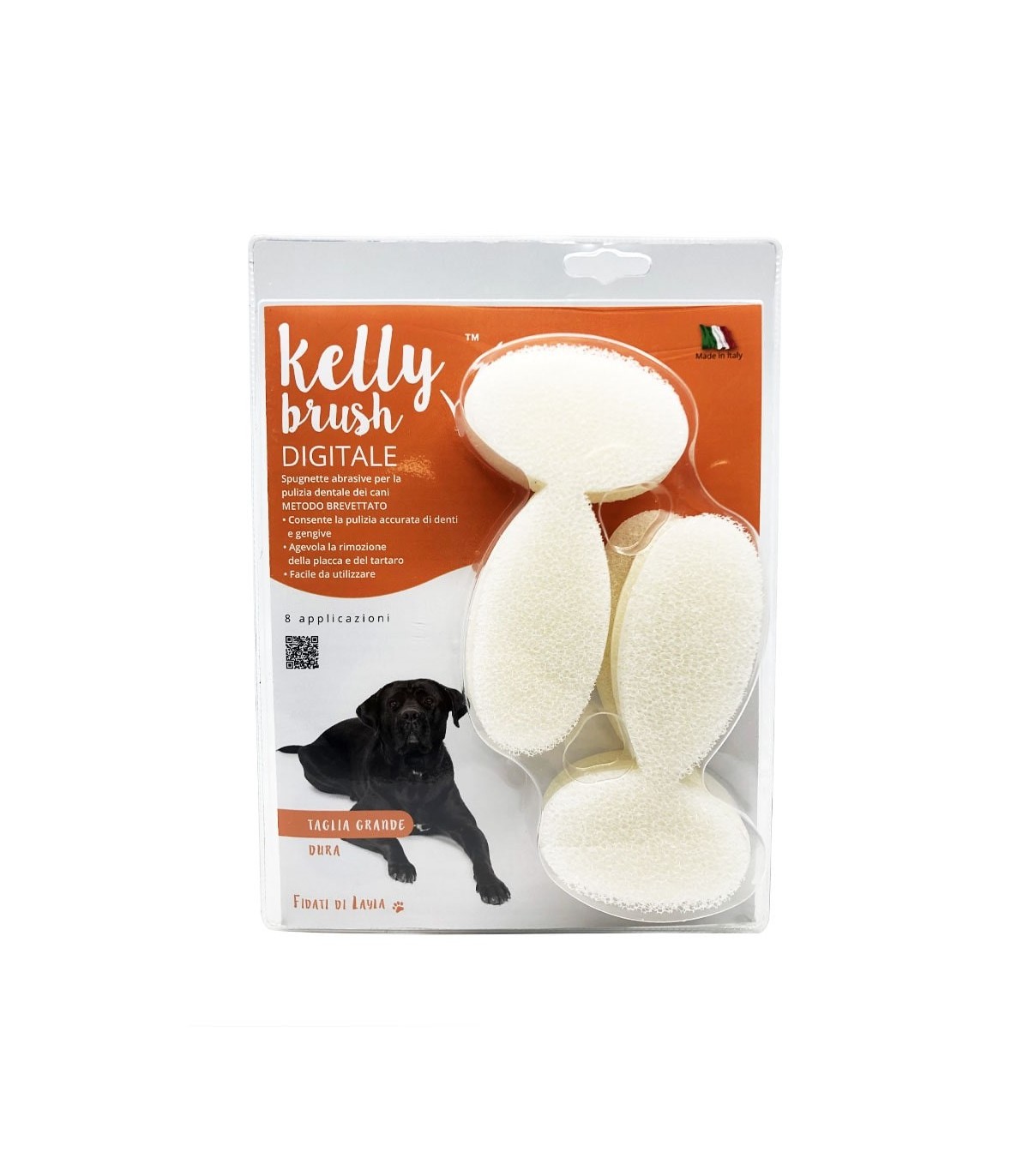 Kelly Brushè un metodo di igiene dentale almeno due volte a settimana per garantire una corretta igiene dentale al tuo cane. La placca rimane intrappolata negli alveoli della spugna abrasiva ed estratta dalla bocca.