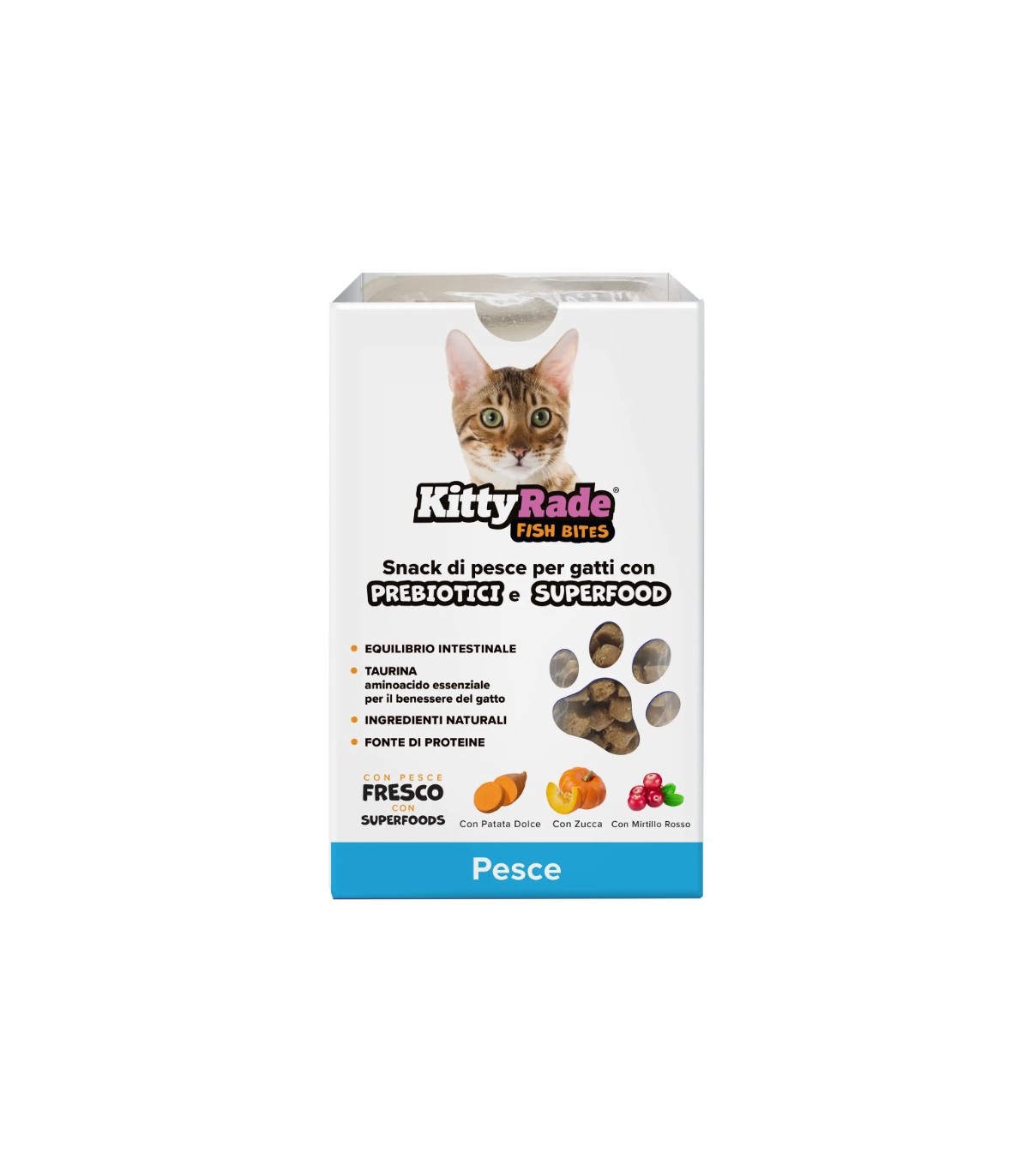 Doggyrade Meat Bites - con Prebiotici e Superfood sono snack di carne semiumidi per gatti. Realizzati con carne fresca e ingredienti naturali al 100%, questi gustosi bocconcini funzionali contengono prebiotici e superfood, tra cui patata dolce, zucca e semi di lino.