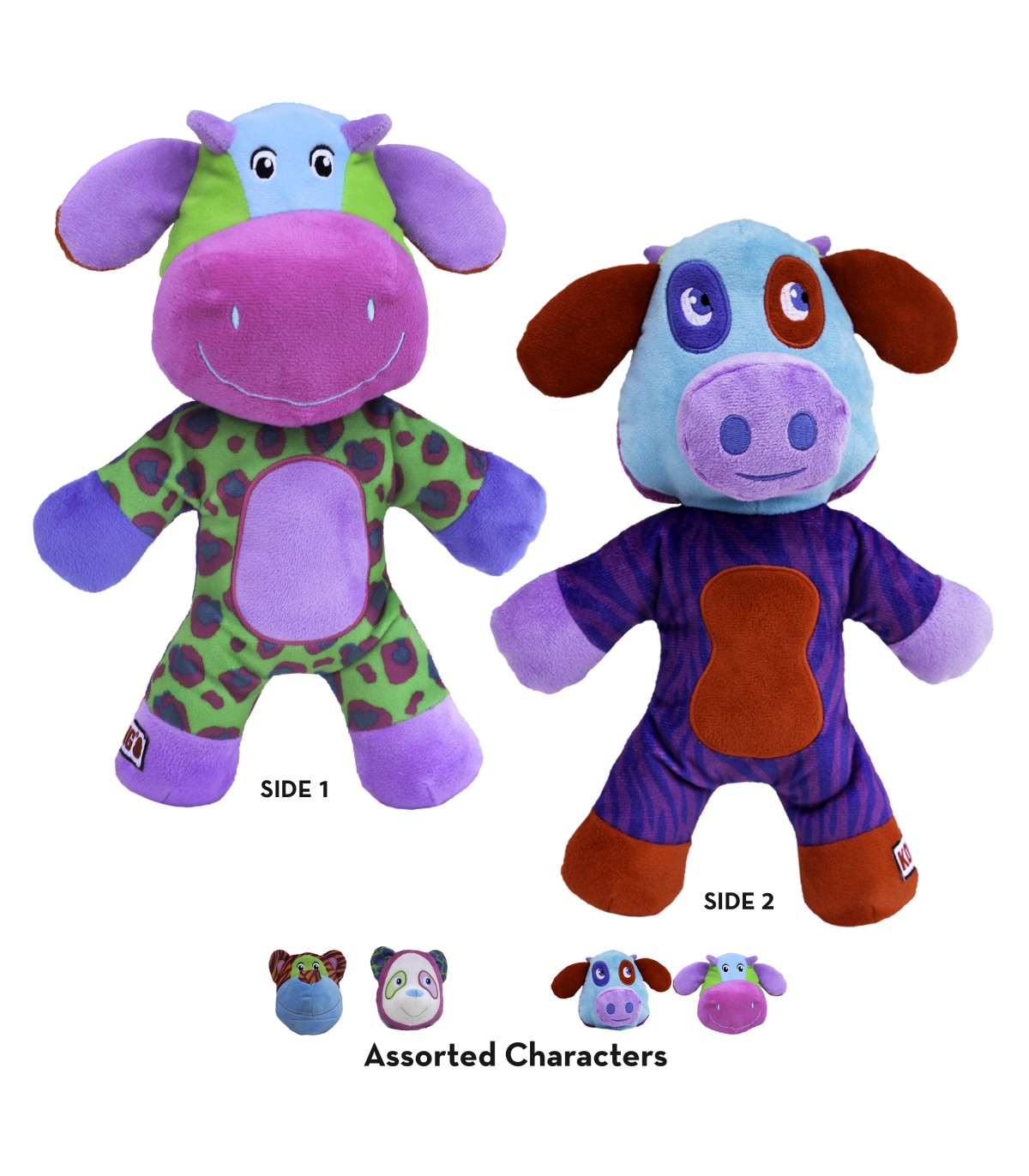 KONG Switcheroos vanta due compagni di giochi in un solo gioco: un personaggio diverso su ogni lato, per divertirsi il doppio a riportarlo e coccolarlo. Un profondo grugnito nella pancia e voci sonore più acute sollecitano gli istinti del cane e prolungano il gioco. Offre diverse modalità di gioco edè delle giuste dimensioni per giocare ad afferrarlo e scuoterlo all'infinito.