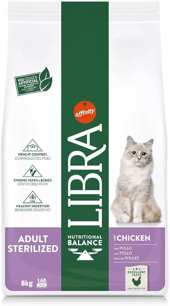 Alimento bilanciato per gatti sterilizzati di tutte le età. L'obiettivo di Libra Cat è quello di mantenere un organismo sano e vitale, fornendo quelle sostanze nutritive che permettono un'alimentazione naturale equilibrata, per garantire un corretto sviluppo del tuo gatto.